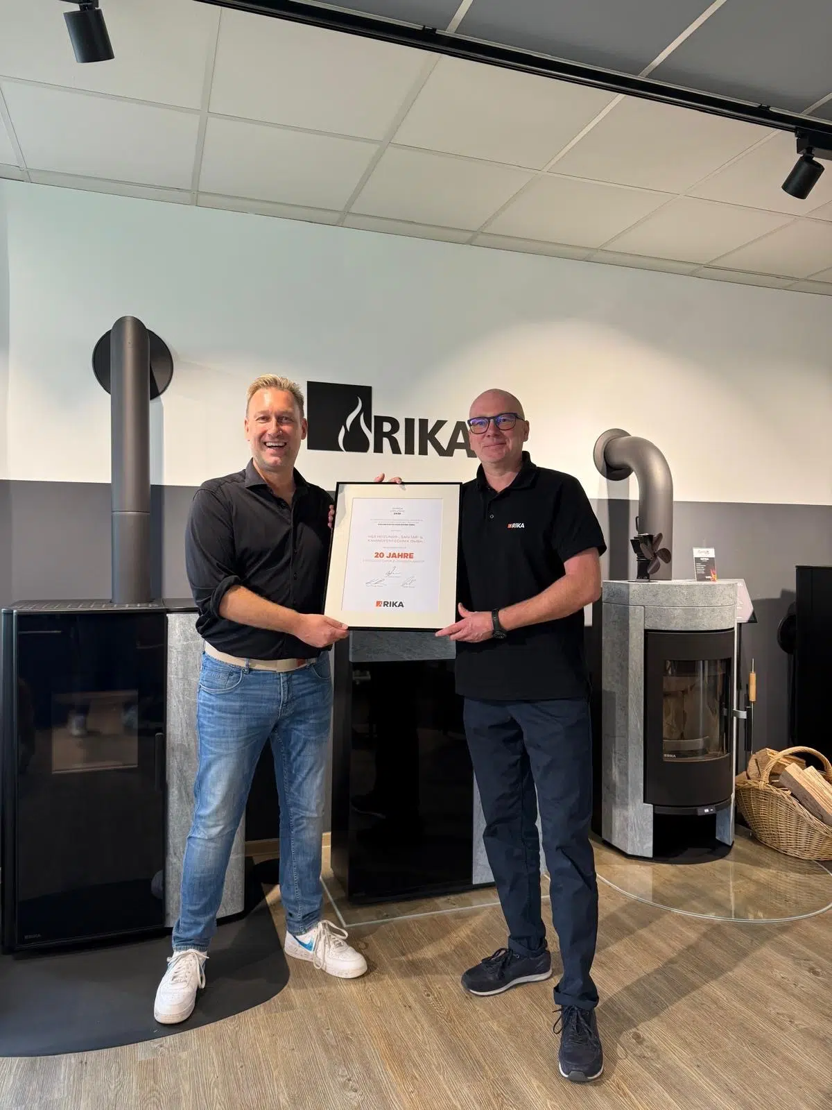 RIKA Innovative Ofentechnik GmbH hat unser Kaminofenstudio in Werl und Lippstadt für 20 Jahre erfolgreiche Zusammenarbeit geehrt.